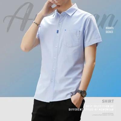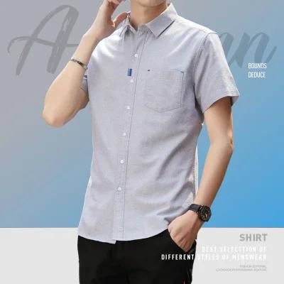 云仓闪发 衬衫男短袖牛津纺纯棉2023新款春夏水洗工艺全棉男士衬衣