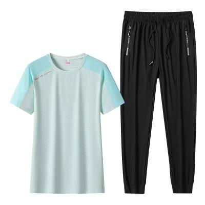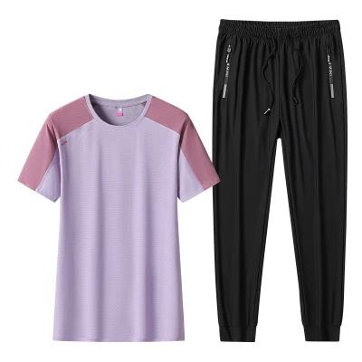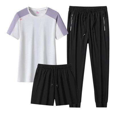 云仓闪发 档口现货厂家直销新款速干透气女士户外T恤长裤运动健身短袖短裤圆领T恤冰丝女上衣套装三件套【主推】