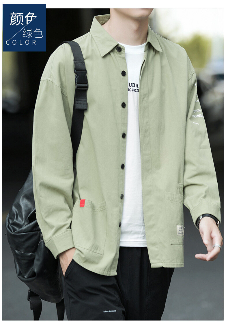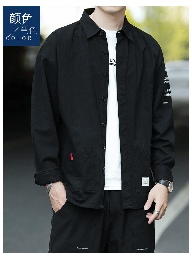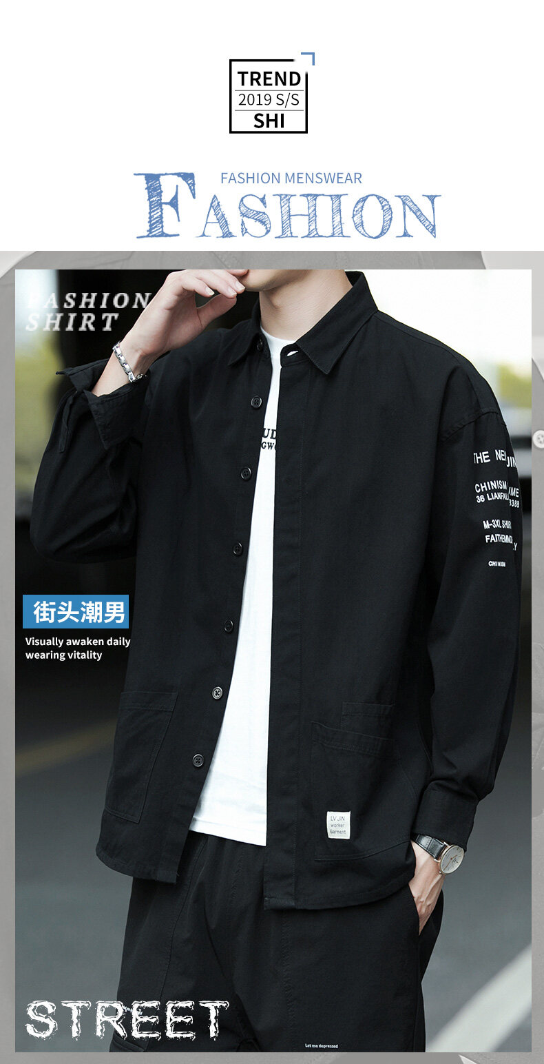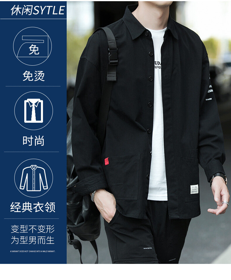 云仓闪发 衬衫男士2020新款宽松长袖外套上衣韩版潮流休闲复古痞帅衬衣
