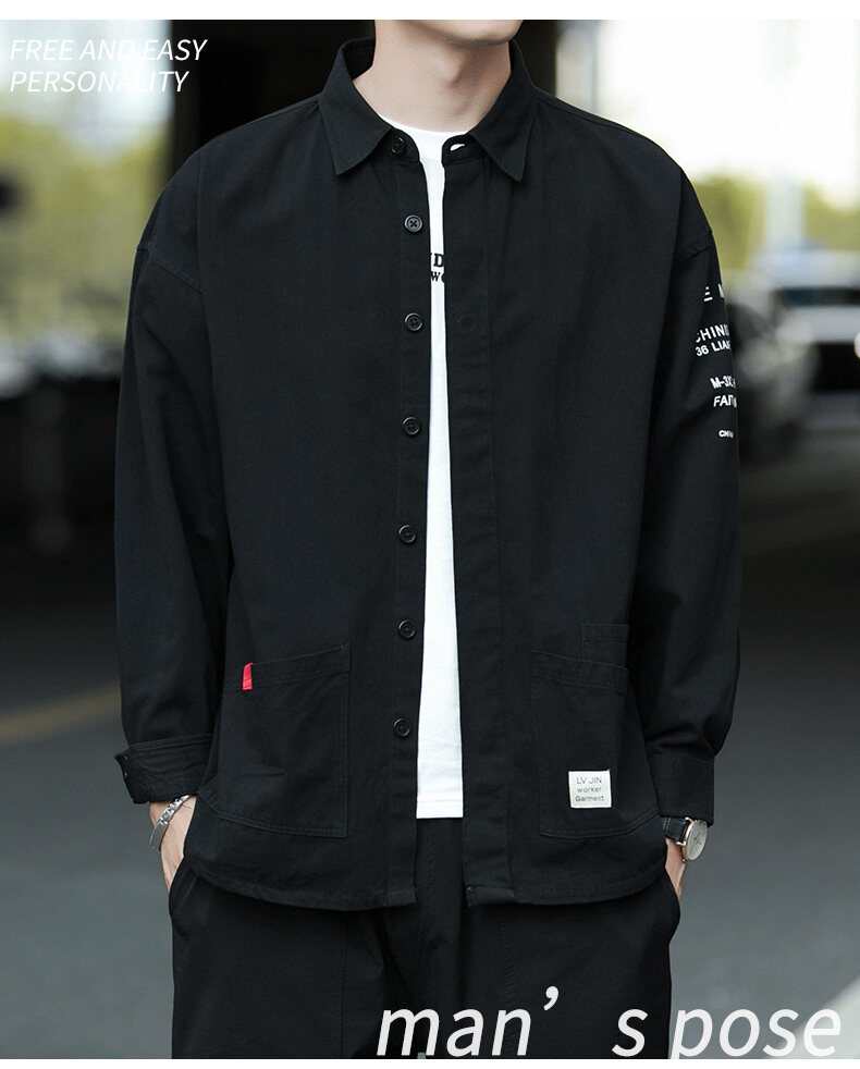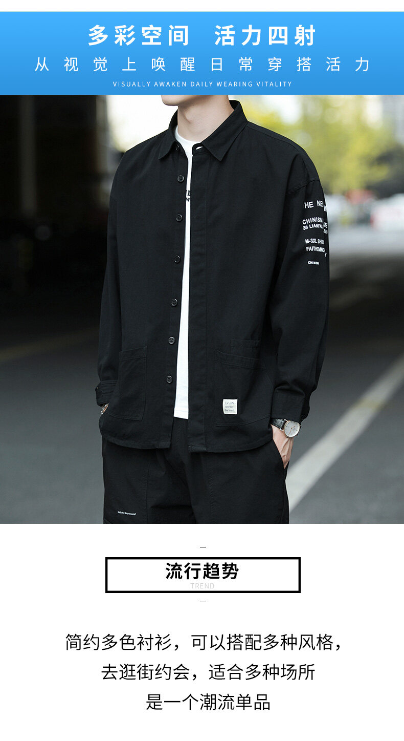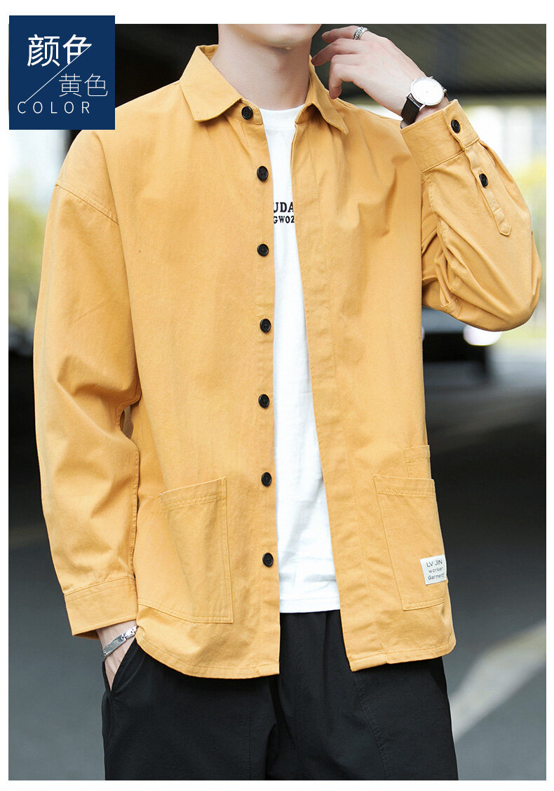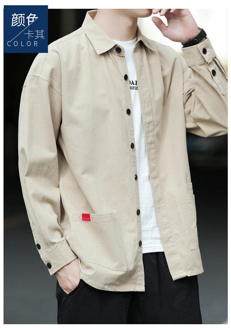 云仓闪发 衬衫男士2020新款宽松长袖外套上衣韩版潮流休闲复古痞帅衬衣