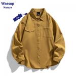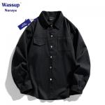 云仓闪发 wassup联名森系长袖衬衫男情侣款纯色衬衫外套