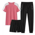 云仓闪发 档口现货厂家直销新款速干透气女士户外T恤长裤运动健身短袖短裤圆领T恤冰丝女上衣套装三件套【主推】