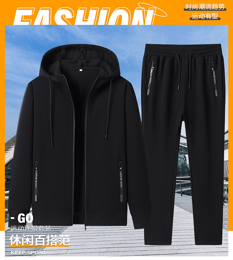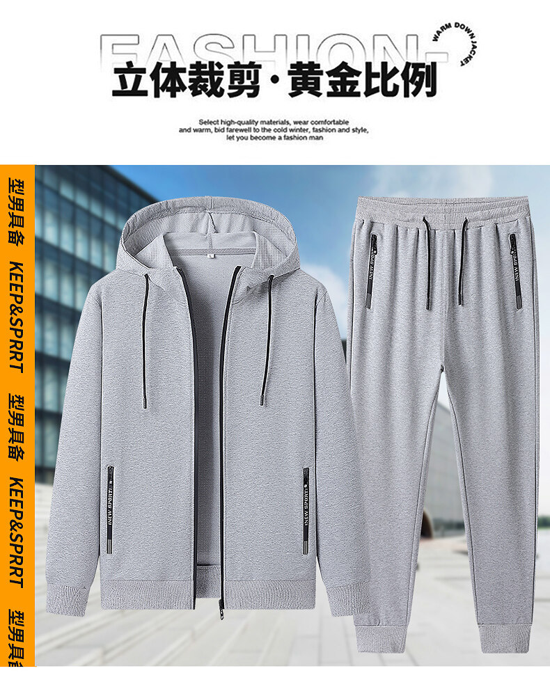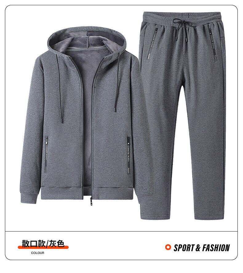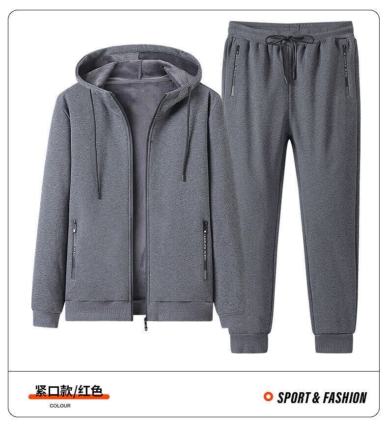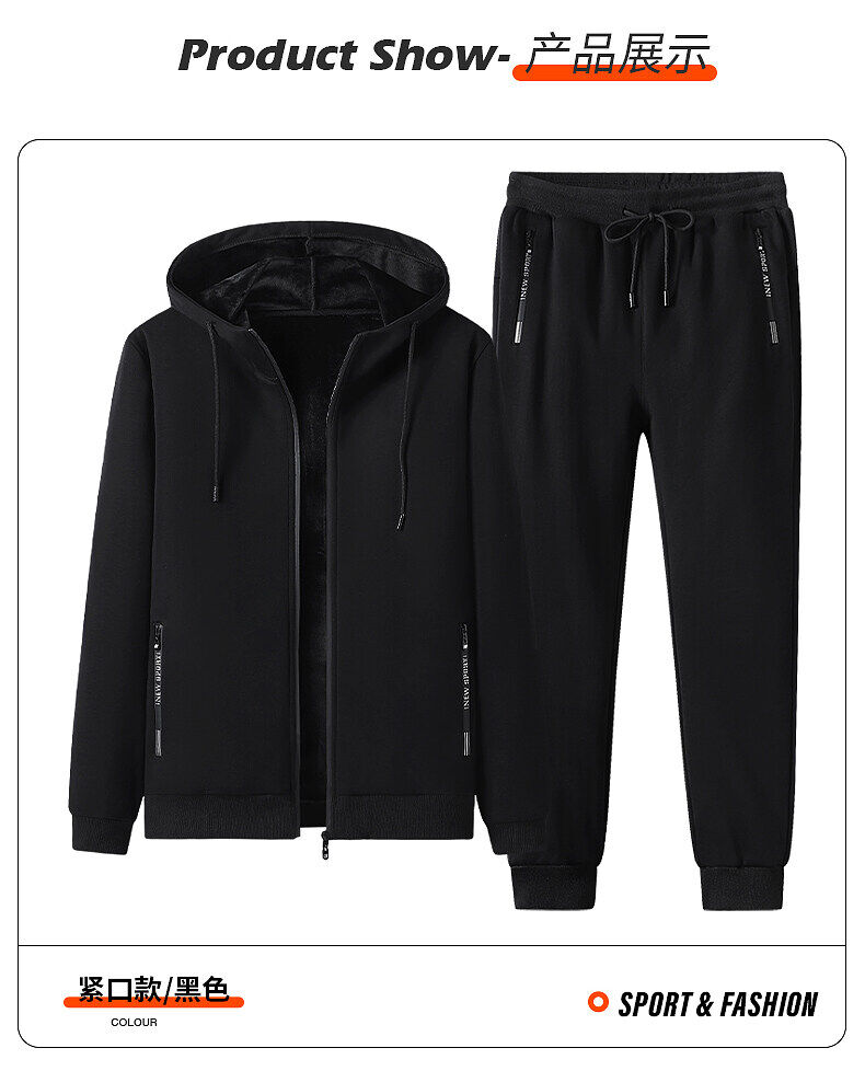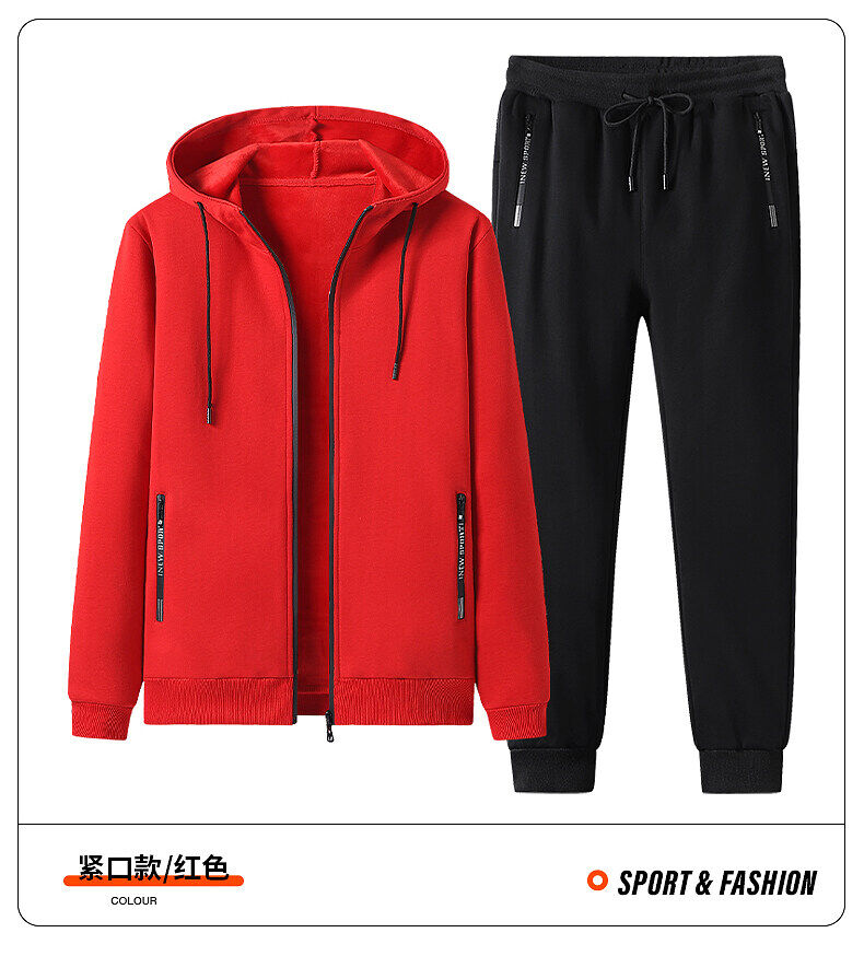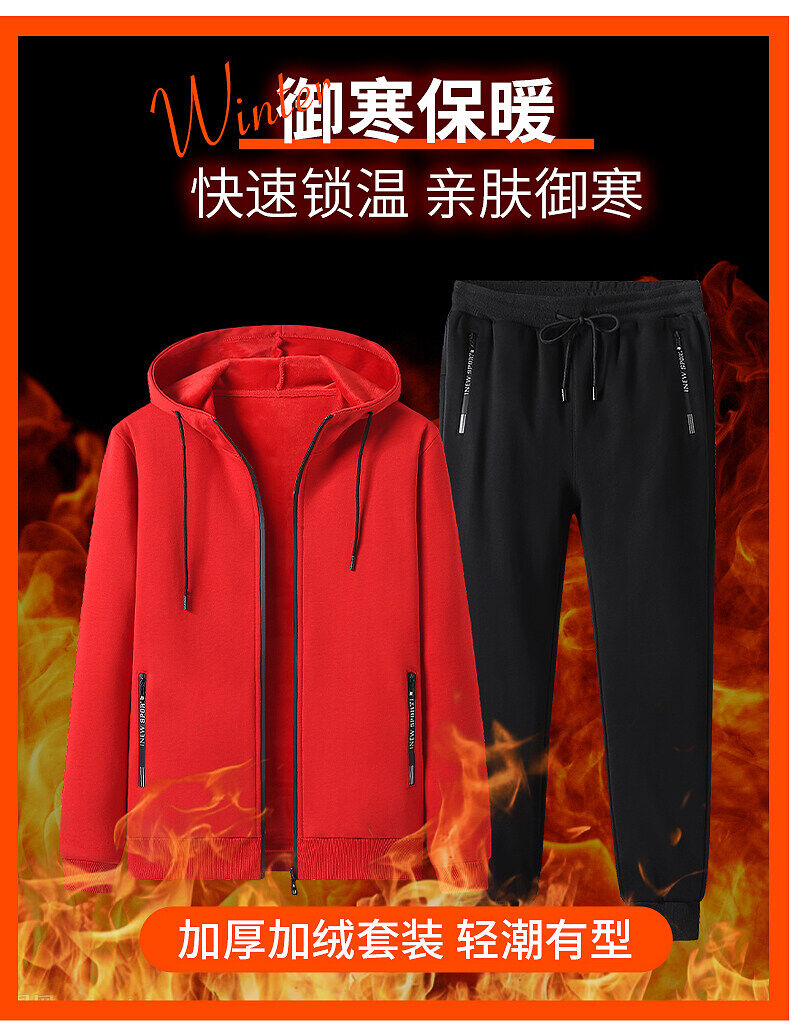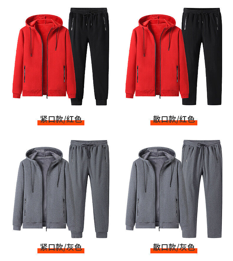 云仓闪发 加绒针织套装 加绒纯棉套装 运动套装休闲裤外套运动裤秋季新款